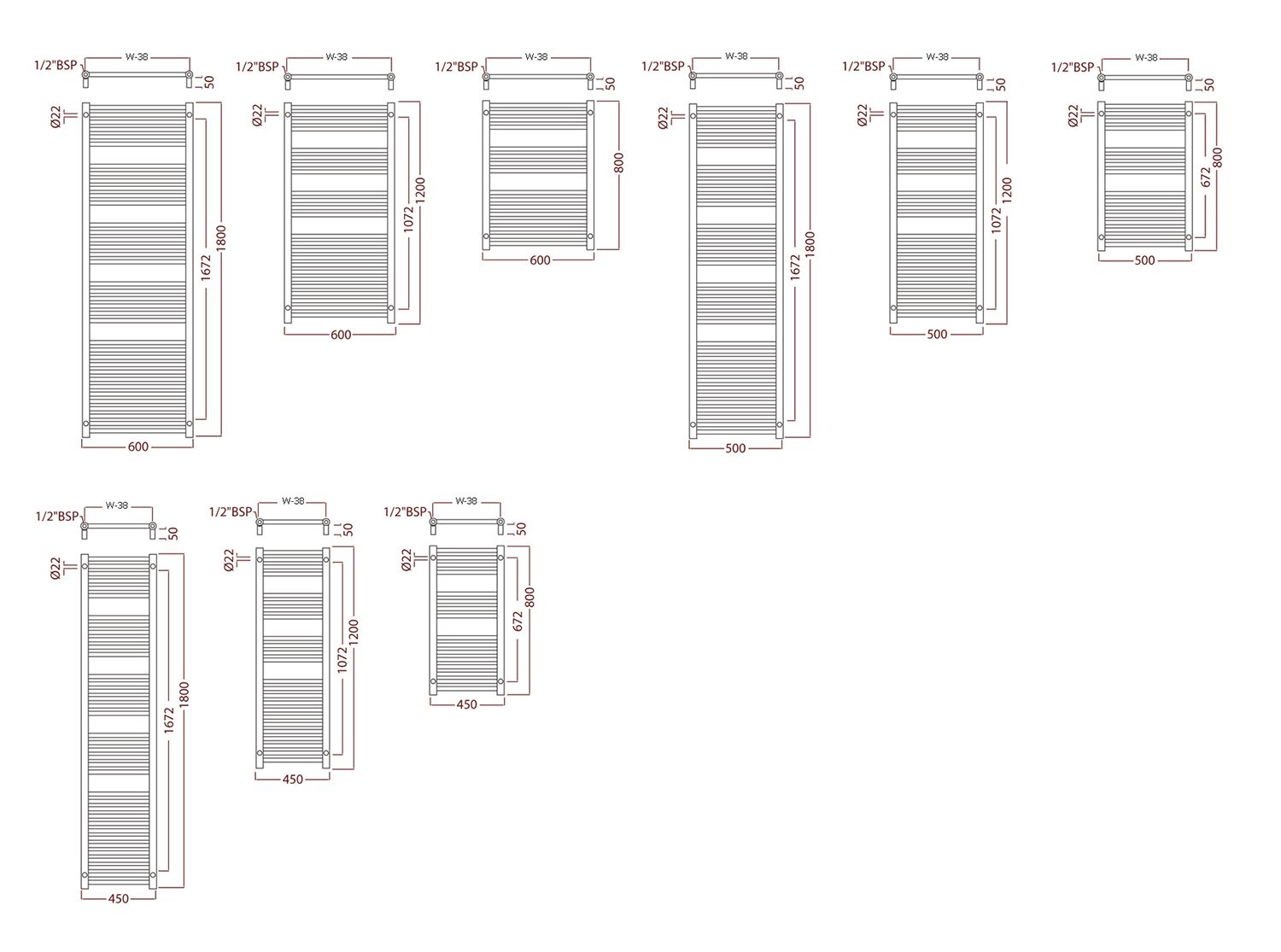 2 x 1/2" donji priključak, priključna mjera: širina radijatora -38mm